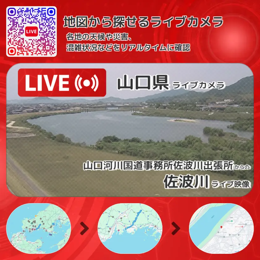 山口河川国道事務所佐波川出張所から、佐波川が確認できるライブカメラです。