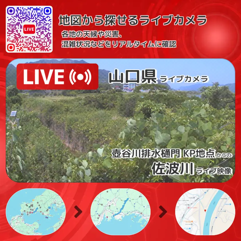 佐波川の他に、壺谷川や周辺の気象状況も併せてチェックすることが可能で、台風・大雨・地震などの災害による被害状況も把握することができます。