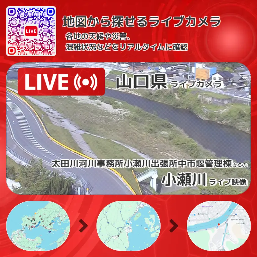 小瀬川の他に、大和橋や周辺の気象状況も併せてチェックすることが可能で、台風・大雨・地震などの災害による被害状況も把握することができます。