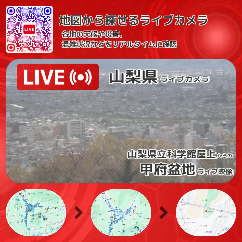 山梨県立科学館屋上から、甲府盆地が確認できるライブカメラです。