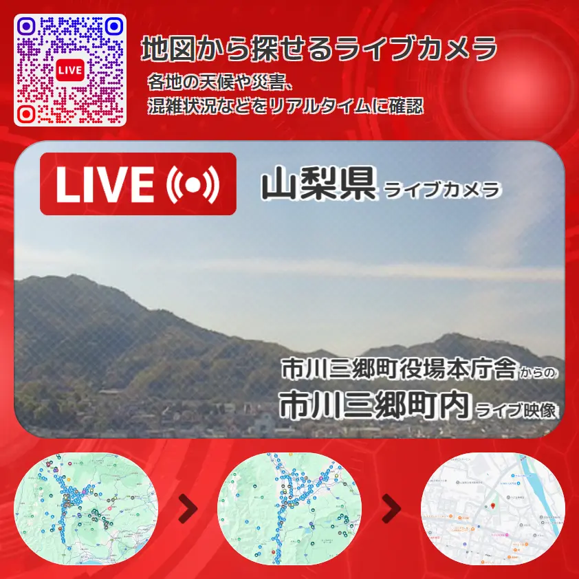 市川三郷町内の他に、市川三郷町立市川小学校や周辺の気象状況も併せてチェックすることが可能で、台風・大雨・地震などの災害による被害状況も把握することができます。