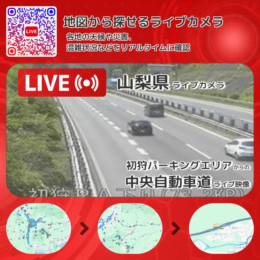 初狩パーキングエリア(初狩PA)下りから、中央自動車道(中央道)が確認できるライブカメラです。