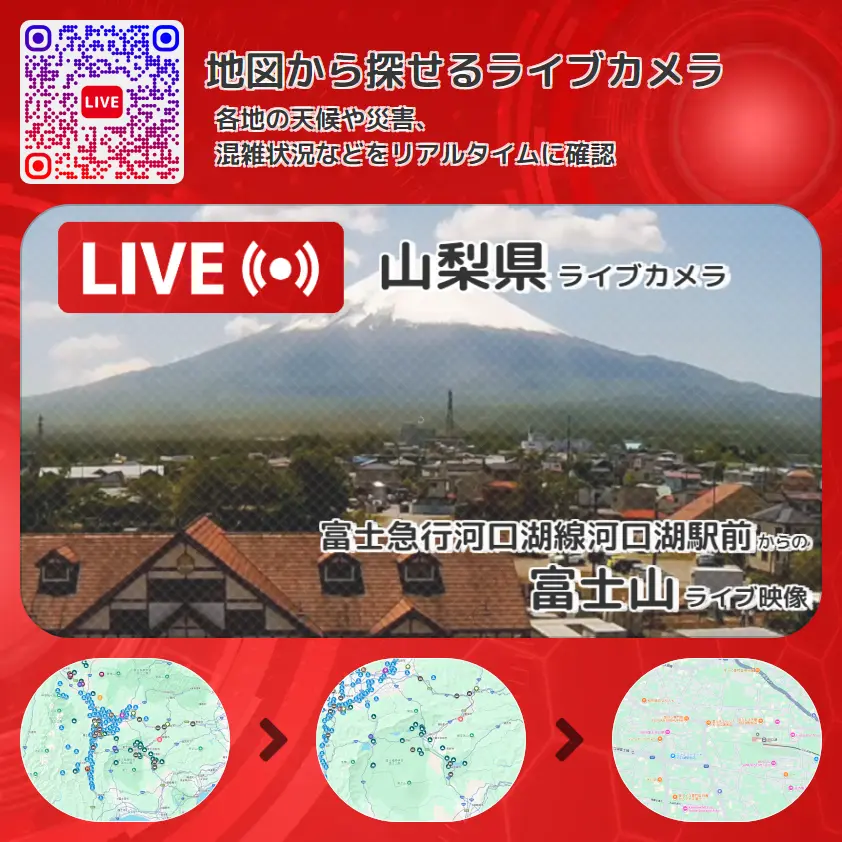 富士山の他に、河口湖駅や周辺の気象状況も併せてチェックすることが可能で、台風・大雨・地震などの災害による被害状況も把握することができます。